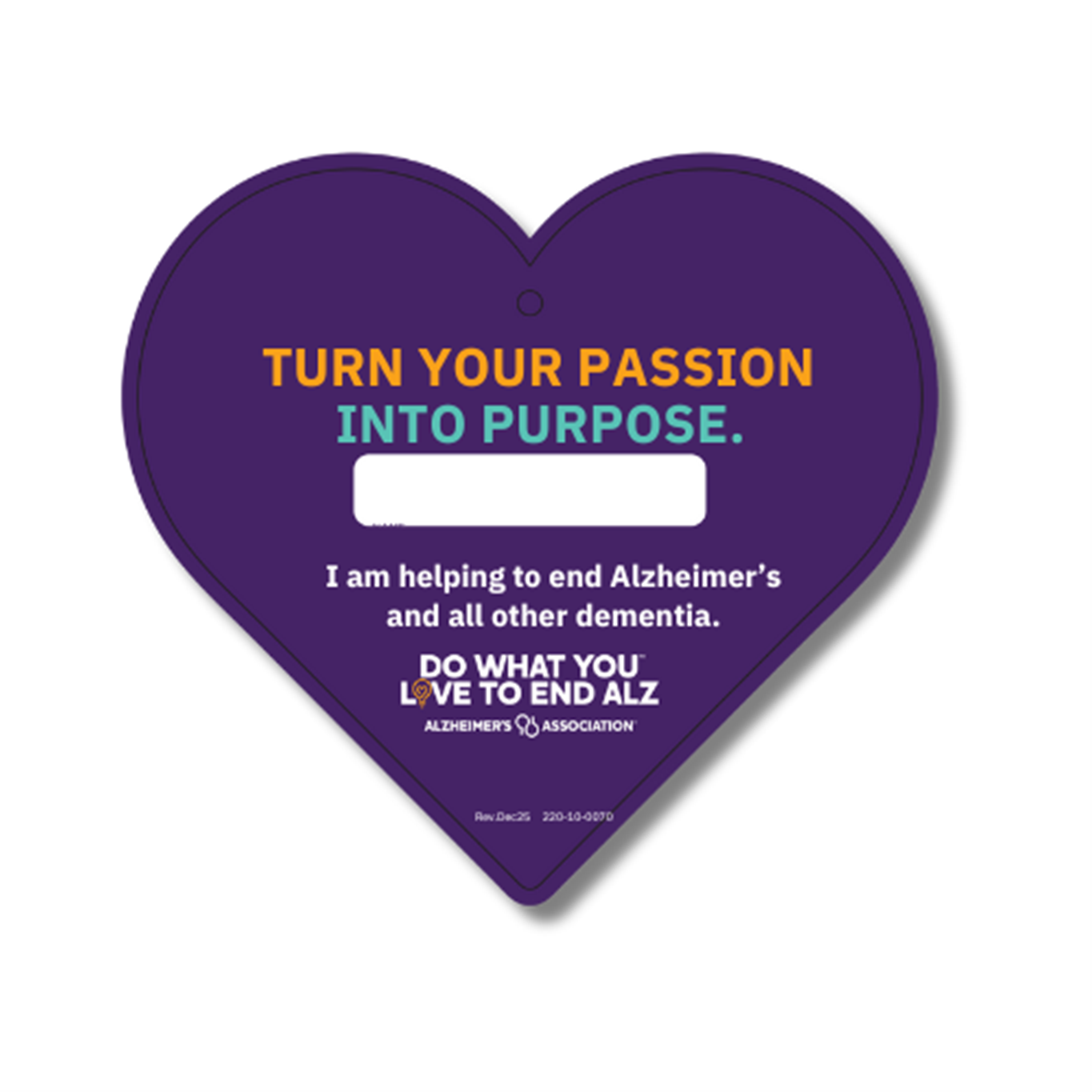 Do What You Love to End ALZ Heart Shaped PoP Pin-Up Price: $16.99 Pack Item #: 220-10-0070 Name: Do What You Love to End ALZ Heart Shaped PoP Pin-Up Ordered in: Pack Pack Qty: 100 - + (max 25) Add to Cart Add to wishlist